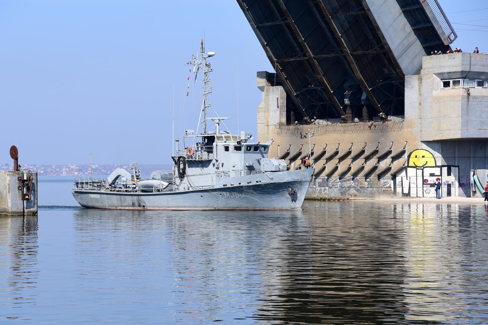 Для того, щоб катер і тральник потрапили до акваторії підприємства, у Миколаєві тимчасово розвели три мости: Південно-Бузький, Інгульський та пішохідний понтонний.